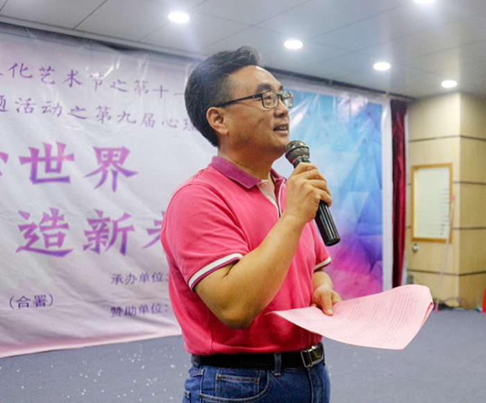 赵日兴副书记首先为大赛致辞。他指出,建设幸福校园,让同学们快乐学习、幸福生活是学校责无旁贷的责任和义务。一个人只有拥有健康的心灵才能享有幸福的人生,希望通过开展“5.25”心理健康月系列活动,让同学们重视心理健康,拥有快乐成长、幸福生活的空间与能力!