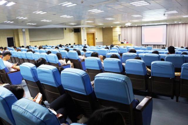 讲座开始前,同学们陆续坐好位置后,主持人上台发言并宣布讲座正式开始。